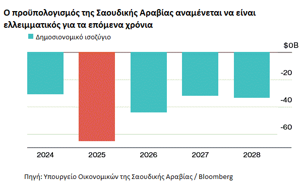 Οι Σαουδάραβες αξιωματούχοι αναμένουν να παρουσιάσουν ένα μεγαλύτερο έλλειμμα προϋπολογισμού για φέτος σε σχέση με ό,τι ανέμεναν προηγουμένως, περίπου στο 5,3% του ΑΕΠ, καθώς το βασίλειο δαπανά πολλά για τα σχέδια οικονομικού μετασχηματισμού του πρίγκιπα διαδόχου Mohammed bin Salman, γνωστά ως Vision 2030. Για να καλύψει αυτό το κενό, η κυβέρνηση δανείζεται πιο συχνά στις διεθνείς αγορές ομολόγων και προσπαθεί επίσης να εκδώσει ένα κοινοπρακτικό δάνειο 10 δισεκατομμυρίων δολαρίων, ανέφερε το Bloomberg.