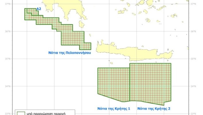 για έρευνα και εκμετάλλευση υδρογονανθράκων στις 4 θαλάσσιες περιοχές νοτίως της Κρήτης και της Πελοποννήσου.