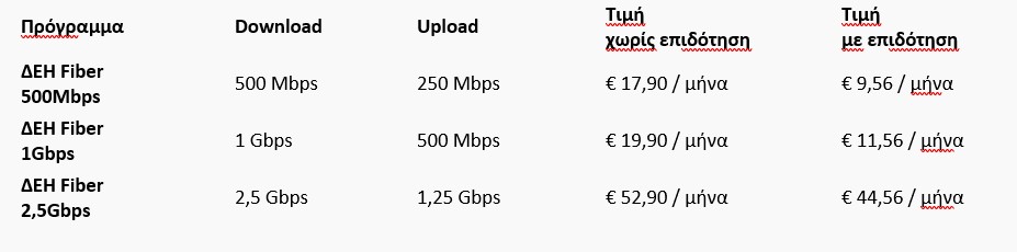 Οι νέες τιμές ΔΕΗ Fiber με Gigabit Voucher