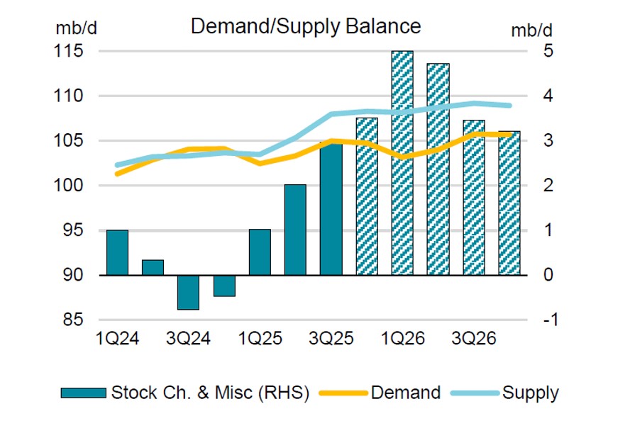 Κατά το δ’ τρίμηνο του 2025, η αύξηση της παγκόσμιας κατανάλωσης πετρελαίου αναμένεται να επιβραδυνθεί σε σχέση με το γ’ τρίμηνο του τρέχοντος έτους, ενώ η προσφορά αργού προβλέπεται να ανακάμψει περαιτέρω, ενισχύοντας τις ανισορροπίες της αγοράς που φαίνονται ολοένα και πιο έντονες, καταλήγει ο ΙΕΑ.