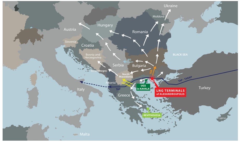 Σχήμα 1: Η Ελλάδα ως πύλη για τα αμερικανικά σχέδια LNG και ενέργειας για την ευρύτερη περιοχή