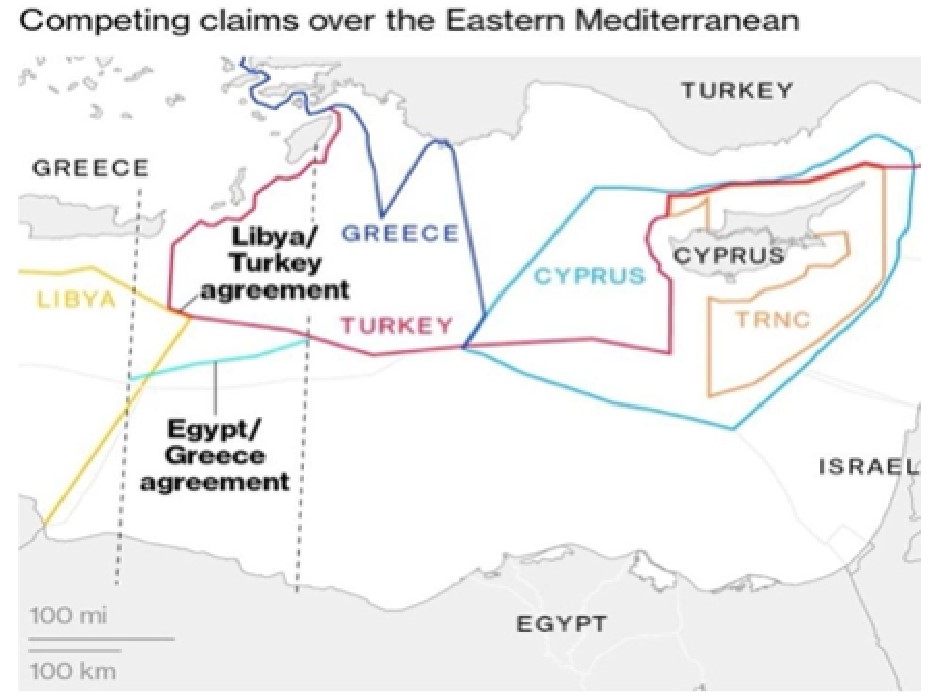 Σχήμα 3: Διαφορές στην οριοθέτηση ΑΟΖ [Πηγή: Bloomberg]