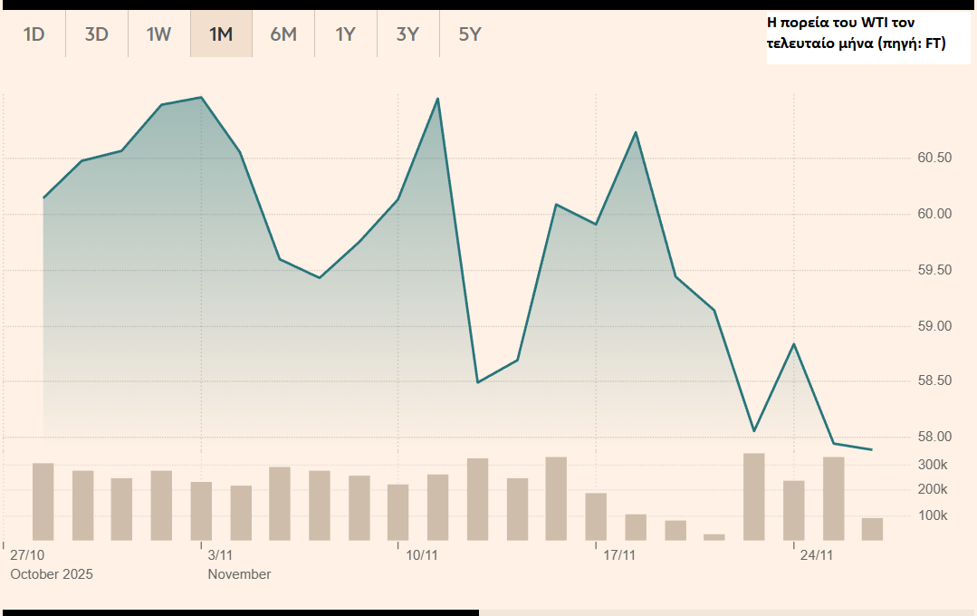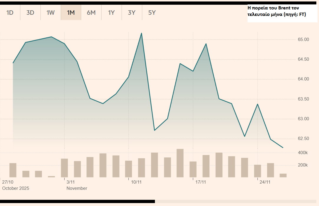 Υπενθυμίζεται ότι τόσο το αργό πετρέλαιο τύπου Brent όσο και το WTI είχαν υποχωρήσει κατά 89 σεντς την Τρίτη, μετά τη δήλωση του Ουκρανού Προέδρου Βολοντίμιρ Ζελένσκι προς τους Ευρωπαίους ηγέτες ότι είναι έτοιμος να προωθήσει ένα πλαίσιο που υποστηρίζεται από τις ΗΠΑ για τον τερματισμό του πολέμου με τη Ρωσία, με μόνο μερικά σημεία διαφωνίας να απομένουν.