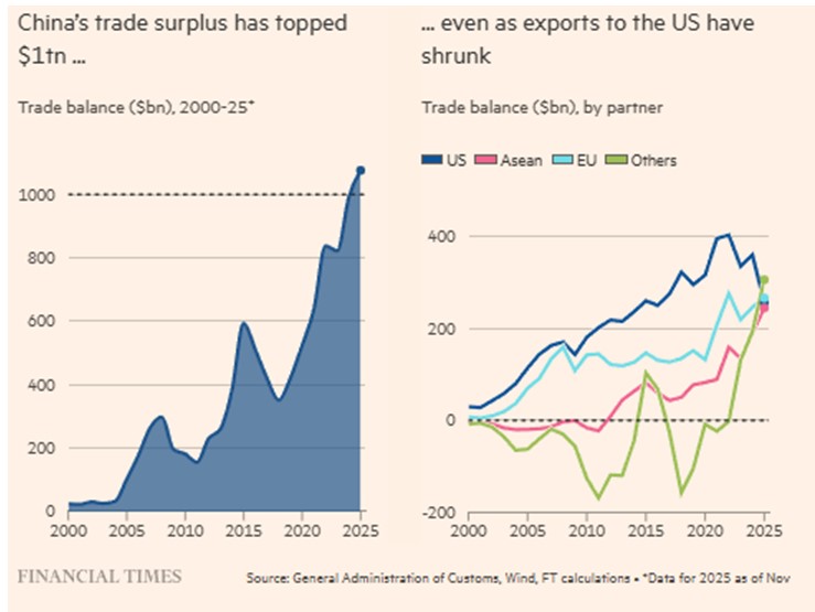 Το ρεκόρ πλεονάσματος έρχεται μετά την αποκλιμάκωση των εμπορικών εντάσεων μεταξύ Ουάσιγκτον και Πεκίνου, που συμφώνησαν τον Οκτώβριο σε ετήσια εκεχειρία.