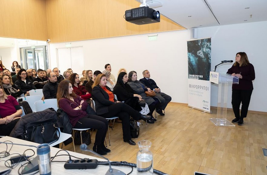 Το πλέγμα παρακολούθησης των μικρορρύπων, με εκτίμηση των κινδύνων σε όλη την αλυσίδα της υδροδότησης μέχρι και τη βρύση του καταναλωτή, παρουσίασε η Όλγα Ουρλόγλου από τη Γενική Διεύθυνση Δημόσιας Υγείας και Ποιότητας Ζωής του Υπουργείου Υγείας. Η Φανή Μισκάκη, αναπληρώτρια διευθύντρια Σχεδιασμού & Ανάπτυξης της ΕΥΔΑΠ, αναφέρθηκε στους κινδύνους για την ποιότητα του νερού, ιδιαίτερα εξαιτίας της λειψυδρίας και της κλιματικής κρίσης, στα μέτρα που λαμβάνει η ΕΥΔΑΠ για να διασφαλίζει την άριστη ποιότητά του, όπως και στις τεχνολογίες αιχμής και τις μεθοδολογίες μη στοχευμένης ανάλυσης που ακολουθούνται για ανίχνευση μικρορρύπων στο νερό της Αθήνας. Για τις δραστηριότητες της ΕΤΒΑ, ως του μεγαλύτερου ιδιωτικού φορέα διαχείρισης βιομηχανικών αποβλήτων στην Ελλάδα, και τις ιδιαιτερότητες της λειτουργίας μονάδων επεξεργασίας σε Επιχειρηματικά Πάρκα με μεγάλη γκάμα δραστηριοτήτων μίλησε ο Δημήτρης Σκουρουμούνης, υπεύθυνος Μονάδων Καθαρισμού Αποβλήτων ΕΤΒΑ ΒΙΠΕ Α.Ε.