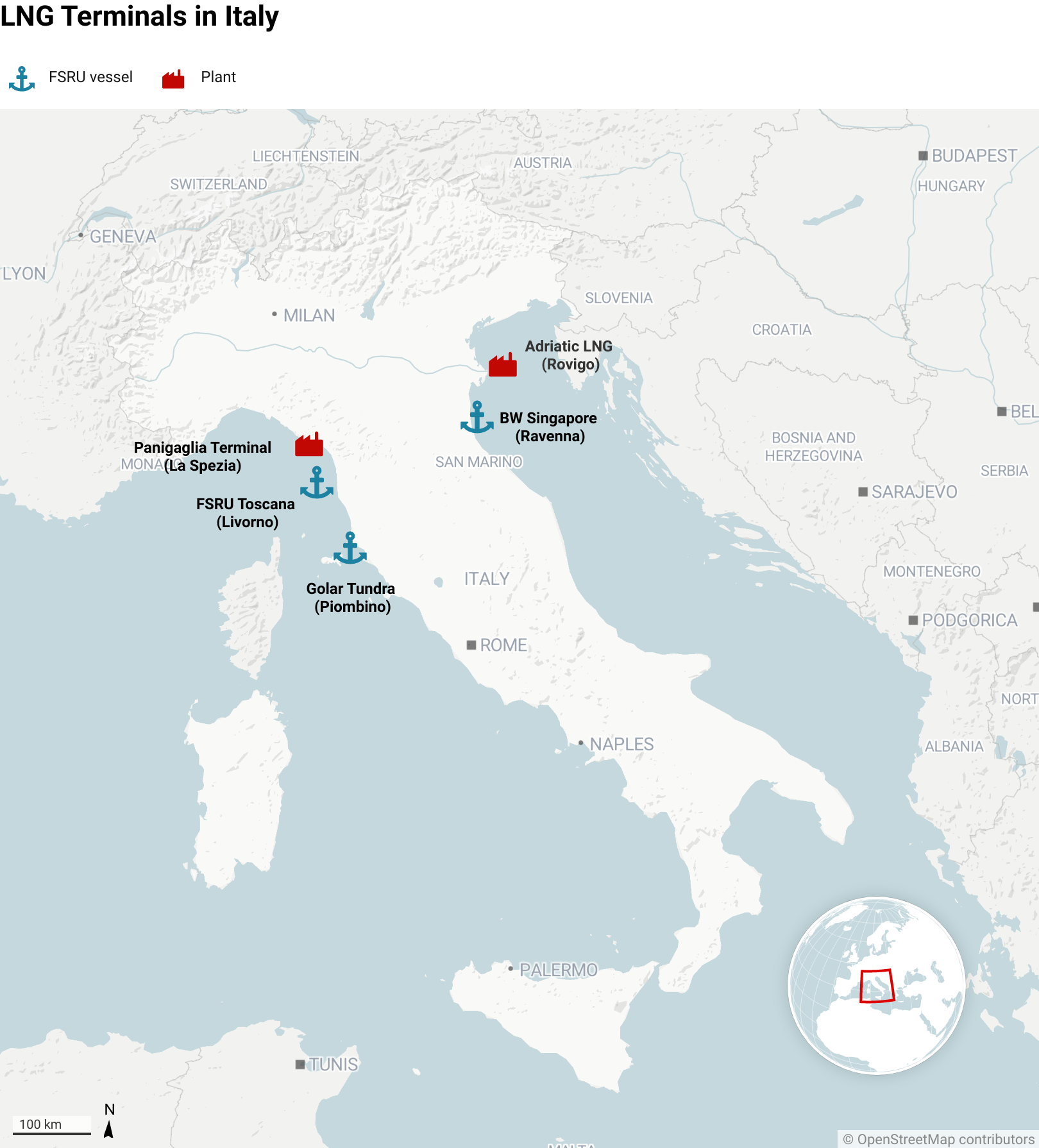 Τα τερματικά LNG της Ιταλίας. Πηγή: Reuters.