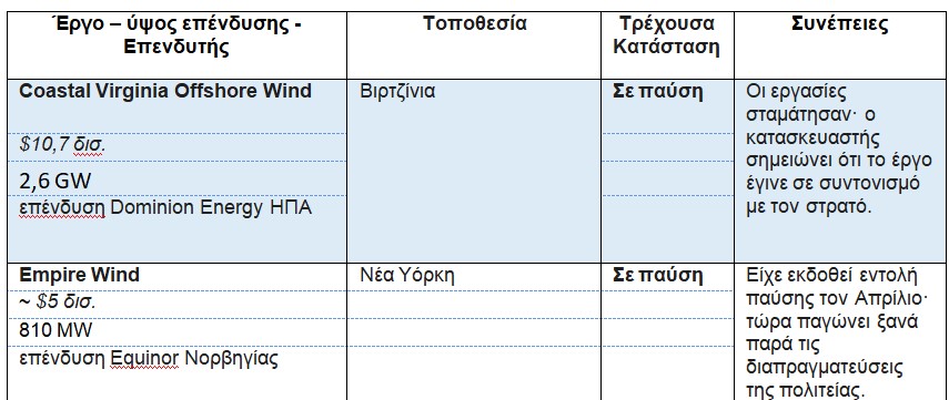 - Λειτουργικές Απώλειες: Η νορβηγική Equinor (EmpireWind) ανέφερε ζημίες ύψους $50 εκ. ανά εβδομάδα κατά τη διάρκεια της παύσης, ενώ η δανική Orsted (RevolutionWind) εκτιμά τις απώλειες σε $15 εκ.