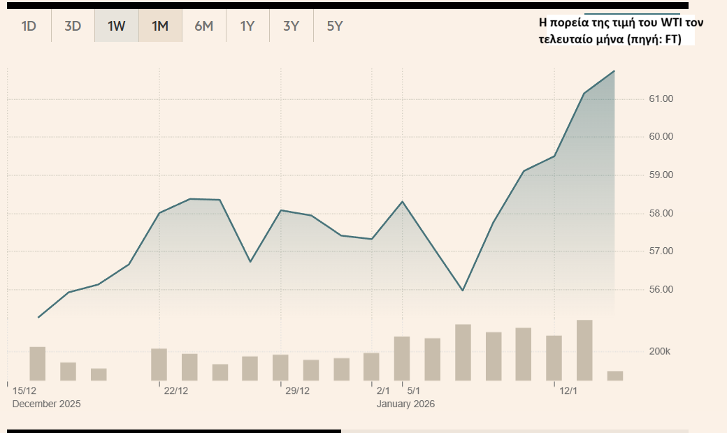 «Βρισκόμαστε σε μια περίοδο γεωπολιτικής αστάθειας και πιθανής διαταραχής του εφοδιασμού», δήλωσε ο Jorge Montepeque, διευθύνων σύμβουλος της Onyx Capital Group. «Οι διαμαρτυρίες στο Ιράν θεωρείται ότι ενδεχομένως να οδηγήσουν σε αλλαγή καθεστώτος. Αυτό είναι ένα μεγάλο γεγονός και η πιθανότητα επίθεσης των ΗΠΑ φαίνεται υψηλή».