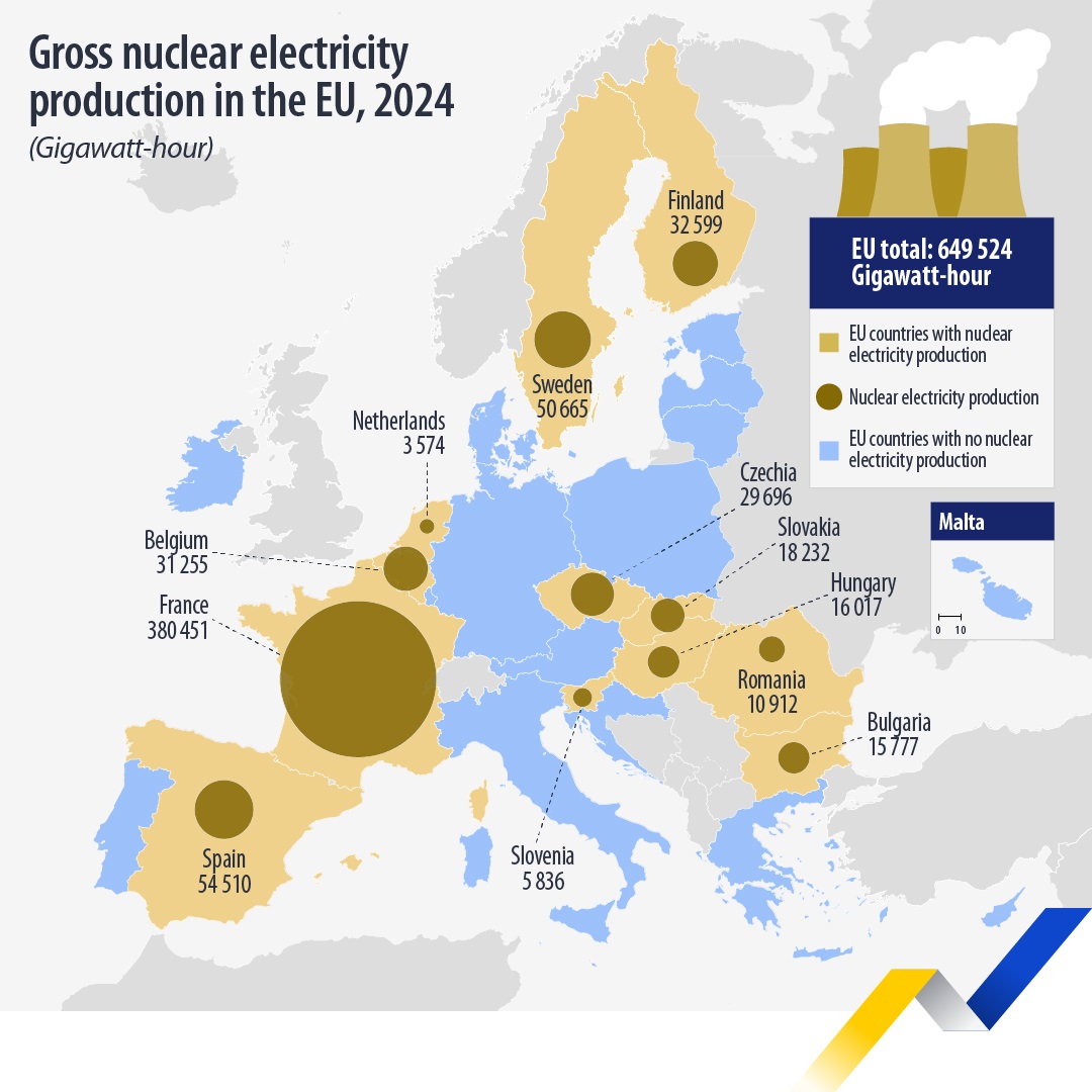 Η παραγωγή πυρηνικής ενέργειας στην ΕΕ το 2024. Πηγή: Eurostat.
