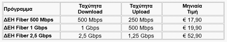 Με τρεις ξεκάθαρες επιλογές το ΔΕΗ Fiber προσφέρει την καλύτερη σχέση τιμής/απόδοσης στην αγορά.