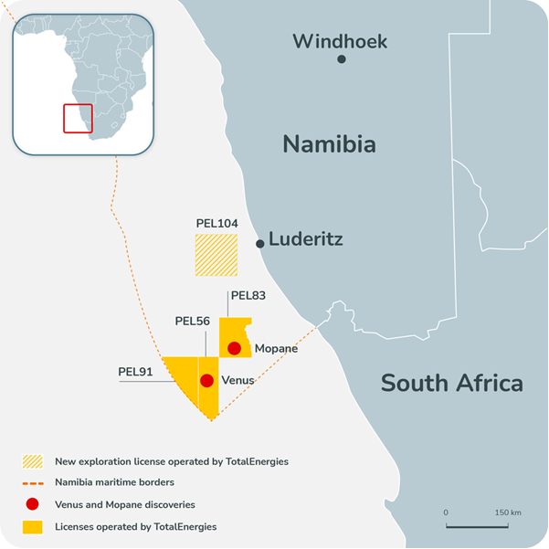 Η γαλλική πετρελαϊκή εταιρεία TotalEnergies απέκτησε νέα άδεια ερευνών, την PEL104, βόρεια της μελλοντικής ανάπτυξης του Venus και της τεράστιας ανακάλυψης στο Mopane - πηγή: TotalEnergies