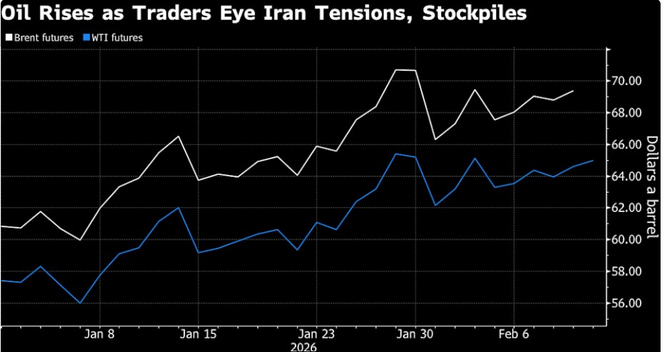 Το αργό πετρέλαιο έχει σημειώσει άνοδο κάθε εβδομάδα φέτος, με μία μόνο εξαίρεση, καθώς οι γεωπολιτικοί κίνδυνοι οδήγησαν τα συμβόλαια μελλοντικής εκπλήρωσης υψηλότερα. Οι ΗΠΑ παρενέβησαν στη Βενεζουέλα τον Ιανουάριο και στη συνέχεια στράφηκαν στο Ιράν μετά από ένα κύμα διαμαρτυριών που αμφισβήτησε την ηγεσία της Ισλαμικής Δημοκρατίας. Παρόλα αυτά, οι τράπεζες υποστηρίζουν ότι υπάρχει άφθονη προσφορά, με την Goldman Sachs Group Inc. να λέει ότι το πλεόνασμα εμφανιζόταν, αλλά αυτό συνέβαινε κυρίως σε τοποθεσίες που είναι λιγότερο σημαντικές για τον καθορισμό των τιμών.