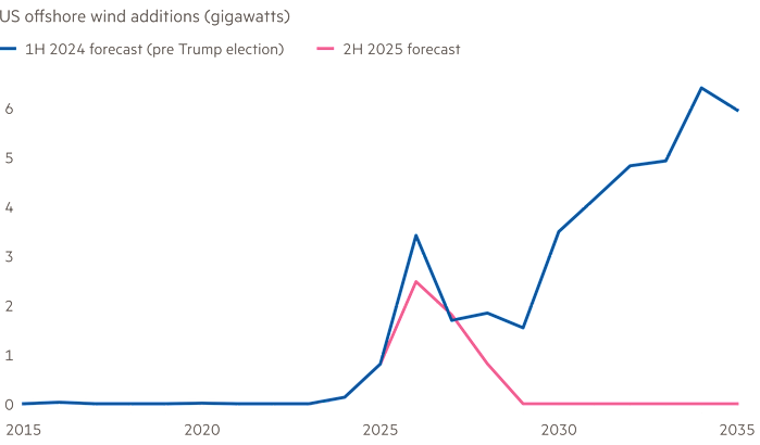 Η ανάπτυξη υπεράκτιων αιολικών έργων στις ΗΠΑ έχει παγώσει. Πηγή: FT.