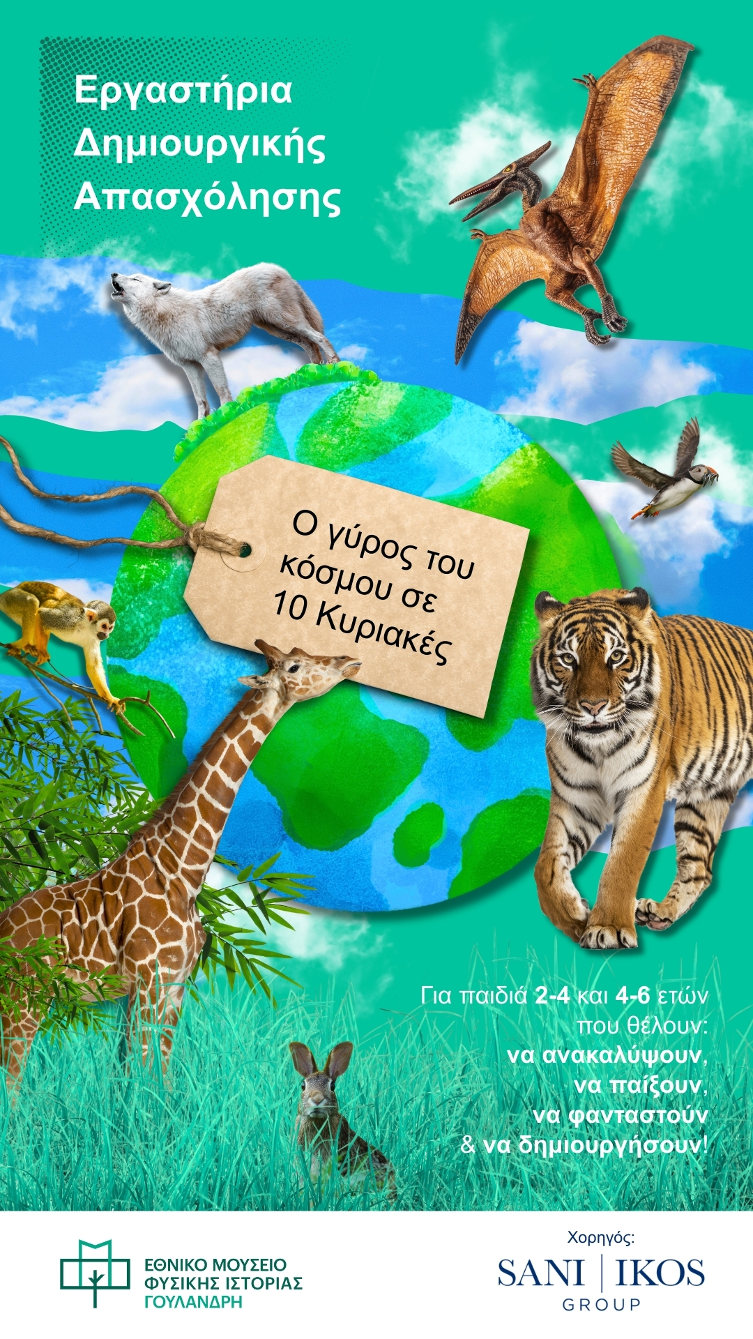 Ένα μοναδικό ταξίδι γνώσης και φαντασίας έχει ξεκινήσει στο Εθνικό Μουσείο Φυσικής Ιστορίας Γουλανδρή, μέσα από το νέο εκπαιδευτικό πρόγραμμα δημιουργικής απασχόλησης «Ο γύρος του κόσμου… σε 10 Κυριακές», που υλοποιείται με τη στήριξη του Ομίλου Sani/Ikos.