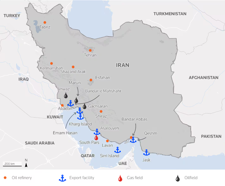 Πυρετός επικρατεί στο νησί Χαργκ, το μεγαλύτερο εξαγωγικό κόμβο πετρελαίου του Ιράν. Το νησί, το οποίο βρίσκεται στα βορειοανατολικά του Περσικού Κόλπου, διαχειρίζεται περίπου το 90% των εξαγωγών ιρανικού αργού, διαθέτοντας δέκα θέσεις ελλιμενισμού, δεξαμενές αποθήκευσης, και διασυνδέσεις με μία σειρά αγωγών από τα χερσαία και υπεράκτια ιρανικά κοιτάσματα. Συνολικά, η οι υποδομές του μπορούν να αποθηκεύσουν περίπου 34 εκατομμύρια βαρέλια αργού. Ως εκ τούτου, το Χαργκ συνιστά μία κομβική υποδομή για το Ιράν, η οικονομία του οποίου επιβιώνει μετά βίας χάρη στις εξαγωγές πετρελαίου.