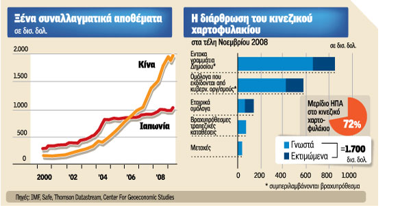Καθώς η κινεζική οικονομία επιβραδύνεται απότομα, η συζήτηση για το ποια θα ήταν η καλύτερη διαχείριση των συναλλαγματικών αποθεμάτων παίρνει φωτιά. Κάποιοι προτείνουν να δαπανηθούν τα χρήματα στην εγχώρια αγορά. Αλλοι επιθυμούν επενδύσεις με μεγαλύτερη ποικιλία. Ολοι, όμως, τάσσονται «κατά» της ανακύκλωσής τους σε αμερικανικά αξιόγραφα. Η συζήτηση αυτή έχει μεγάλη σημασία για την κυβέρνηση Ομπάμα. Ιδιαίτερα δε από τη στιγμή που η κινεζική κυβέρνηση αποφασίσει να εκμεταλλευτεί τα συναλλαγματικά της αποθέματα για να αποκτήσει επιρροή στη χάραξη της αμερικανικής οικονομικής πολιτικής.