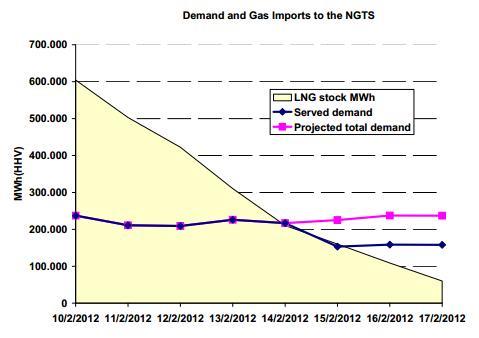 επιδεινωθεί περαιτέρω. Η Επιτροπή ενημερώθηκε από την ΡΑΕ για την κίνηση του ΔΕΣΦΑ να σημάνει συναγερμό την ίδια ημέρα και να θέσει το σύστημα σε κατάσταση εκτάκτου ανάγκης.