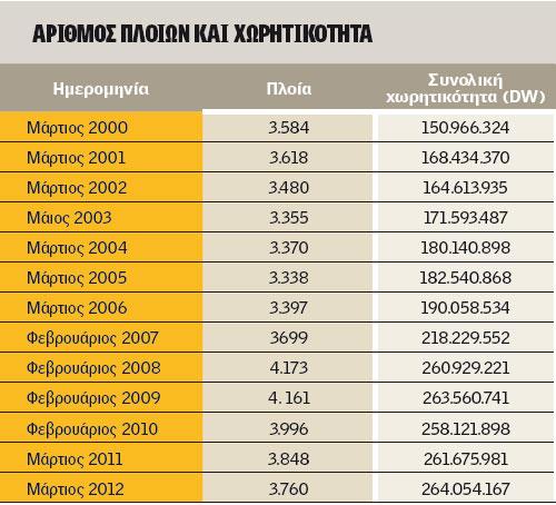 Το Μάρτιο του 2012 ο ελληνικών συμφερόντων ποντοπόρος στόλος αριθμούσε 3.760 πλοία συνολικής χωρητικότητας 264.054.167 τόνων έναντι 3.848 πλοίων το 2011 χωρητικότητας 261.675.981 τόνων, ενώ 437 πλοία βρίσκονται στο στάδιο της κατασκευής. Το Committee σχολιάζει ότι συνεχίζεται η μείωση σε αριθμό πλοίων για τον ελληνόκτητο στόλο αλλά παράλληλα σημειώνεται ιστορικό ρεκόρ όσο αφορά τη χωρητικότητά του.