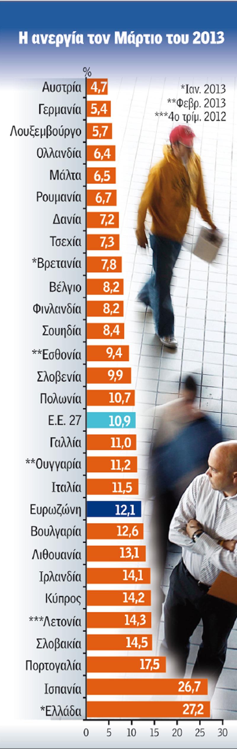 στοιχεία που αφορούν τον περασμένο Μάρτιο, ο αριθμός των ανέργων έφτασε