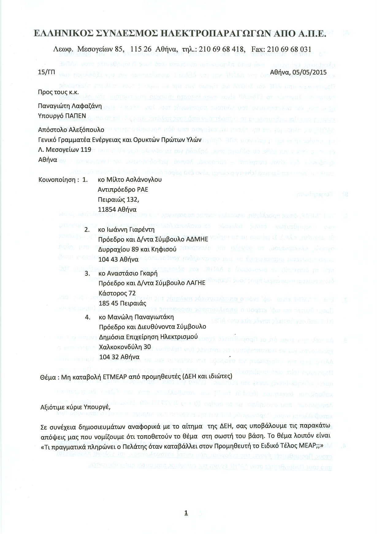 Η επιστολή του ΕΣΗΑΠΕ προς τον Υπουργό ΠΑΠΕΝ: