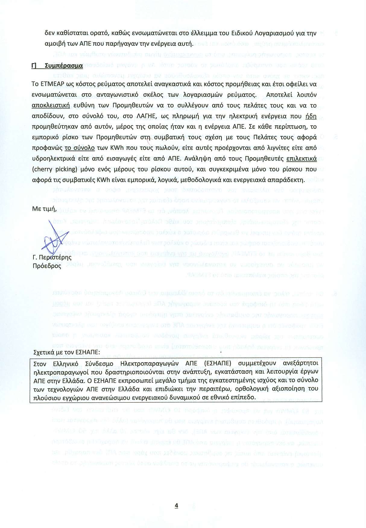 Ηλεκτροπαραγωγών από Ανανεώσιμες Πηγές Ενέργειας θεωρεί ότι το ΕΤΜΕΑΡ είναι
