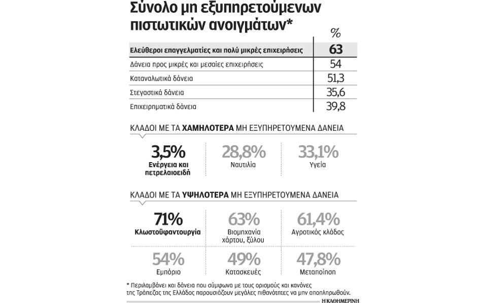 Σημειώνεται ότι στα επιχειρηματικά δάνεια το υψηλότερο ποσοστό μη