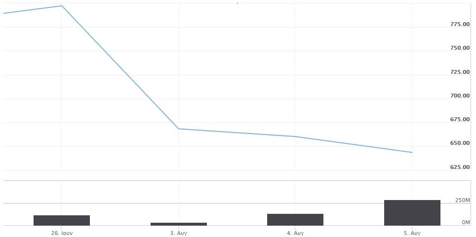 οποία εμφάνισε απώλειες 15.5% με την τιμή να κλείνει στα 3.980€ στις 5/8 και