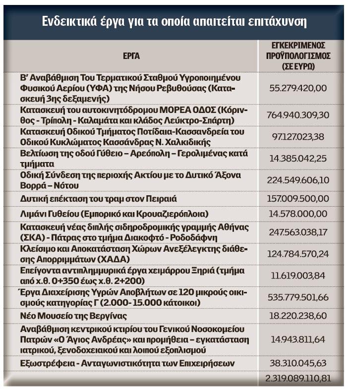 Tα 181 έργα προτεραιότητας είναι συνολικού εγκεκριμένου προϋπολογισμού
