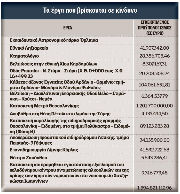 Δηλαδή το 38% των έργων κρέμονται από μία κλωστή...