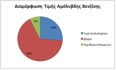 26% της τελικής τιμής είναι η τιμή διυλιστηρίου, οι φόροι αποτελούν το 66,4%,